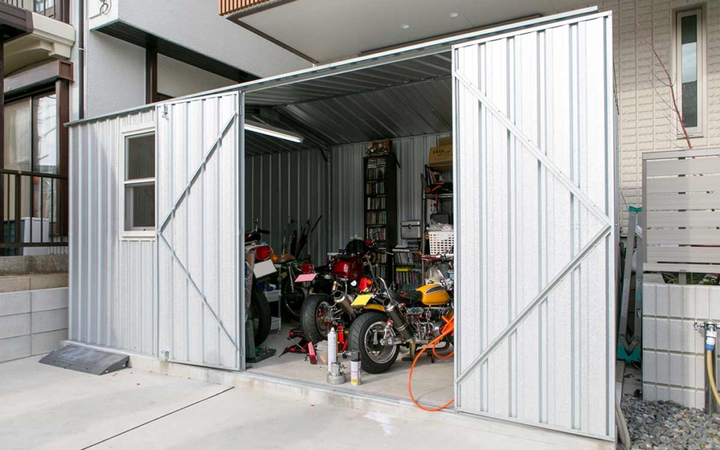 ※ 木造の壁の場合、バイクや車などの可燃物が入っている物の使用はできません。撮影のためバイクは一時的に収納しております。