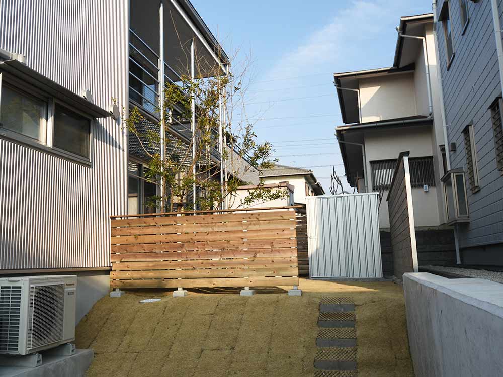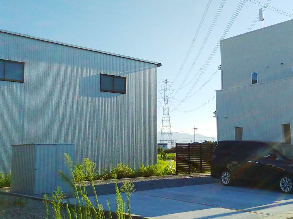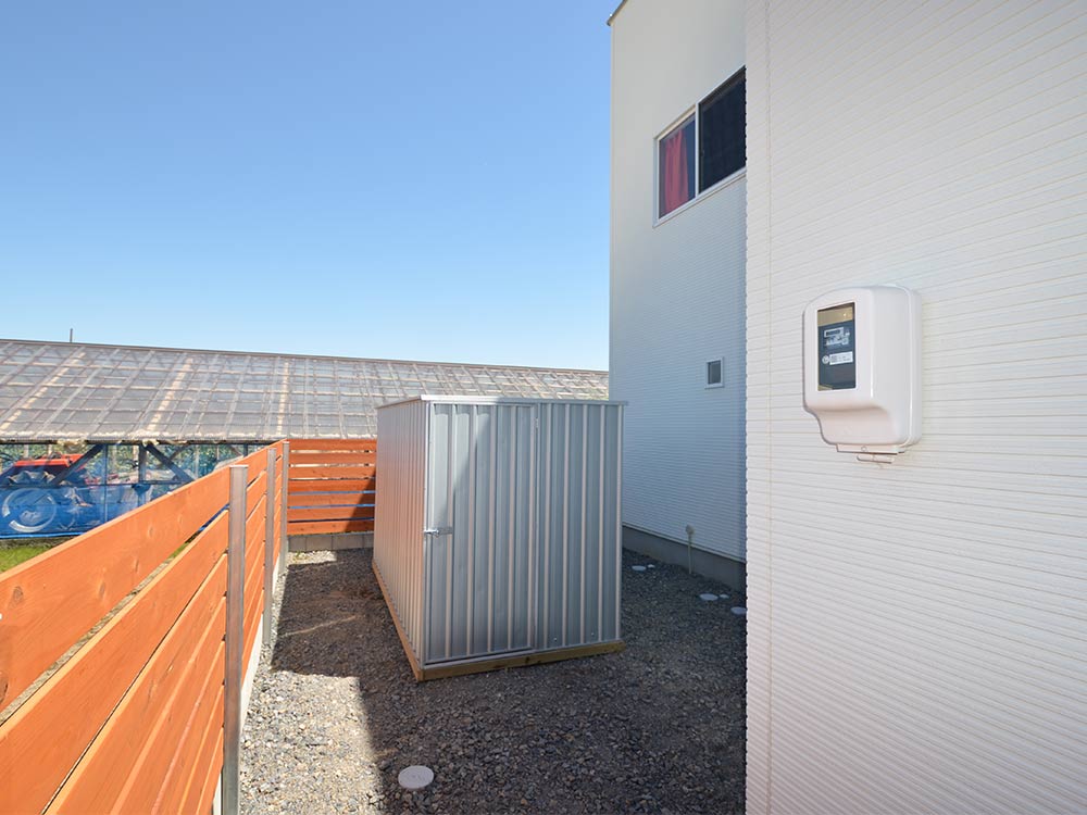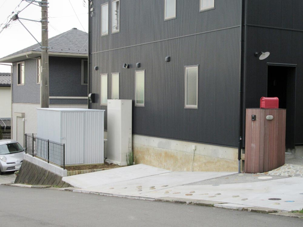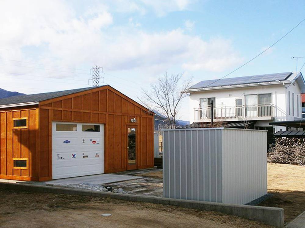 まるで海外のコンテナのような外観のユーロ物置®️バイシクルキューブを設置した施工写真をご覧ください。
