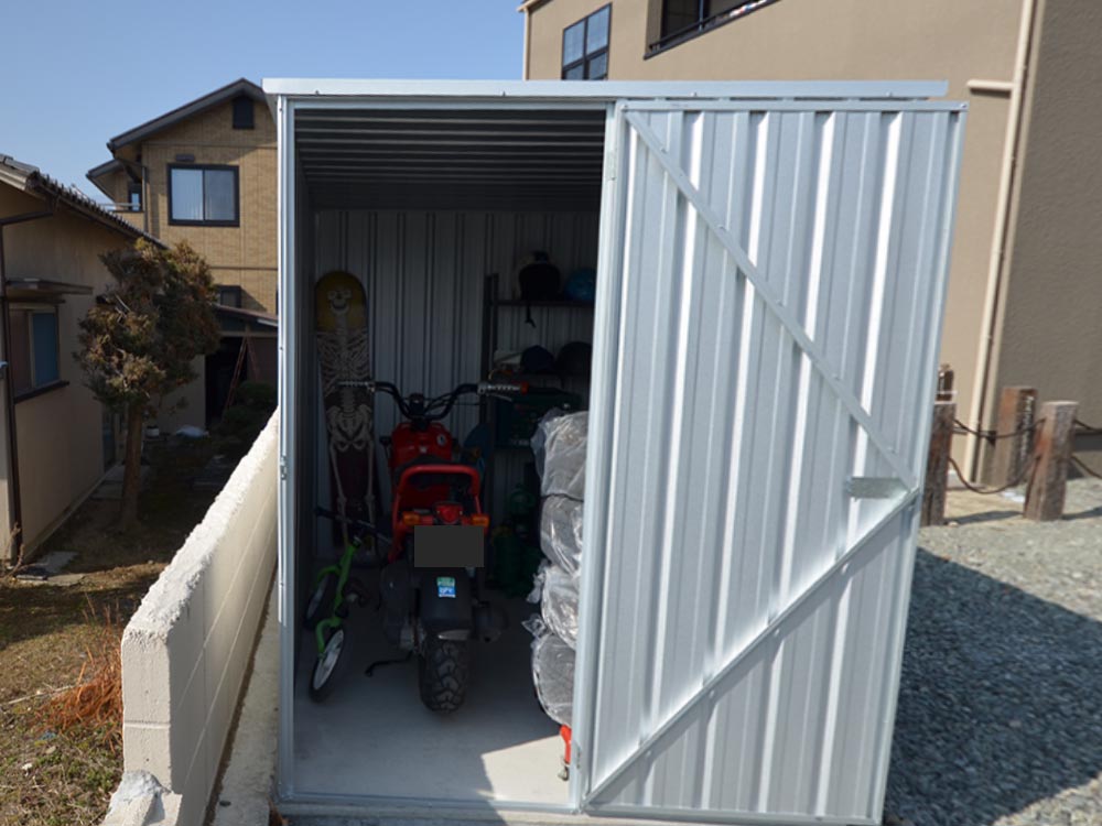 - 奥行きがあり、自転車やバイクを縦にそのまま収納できる