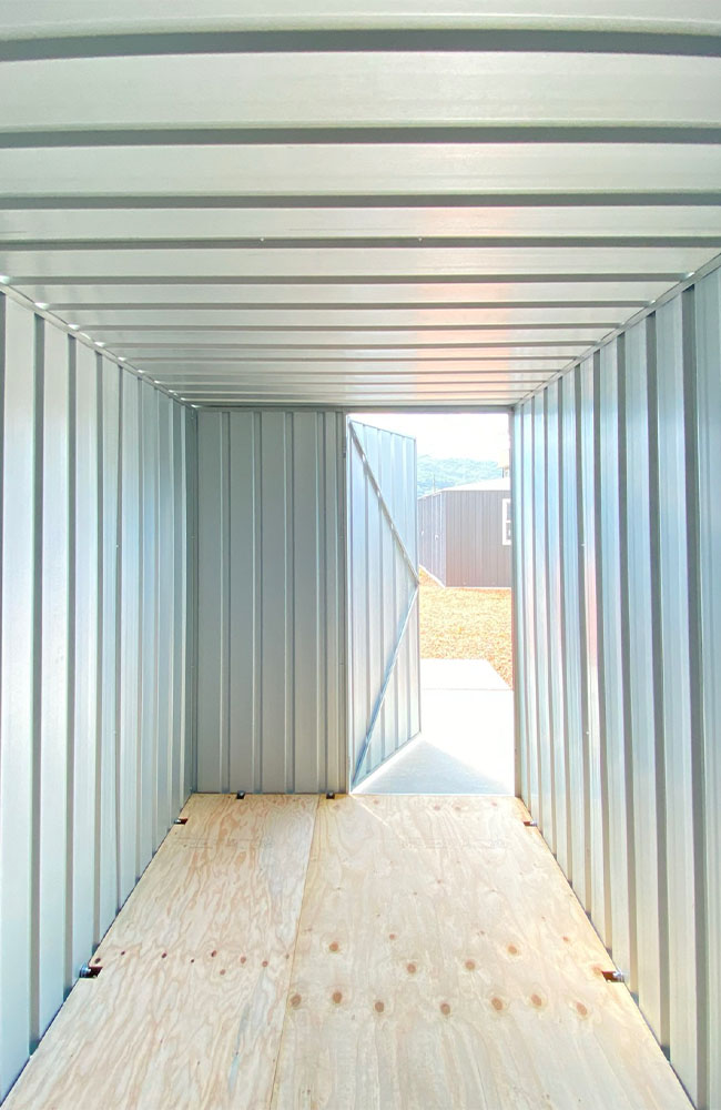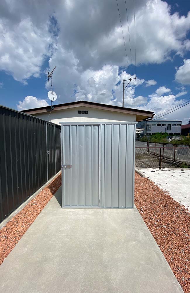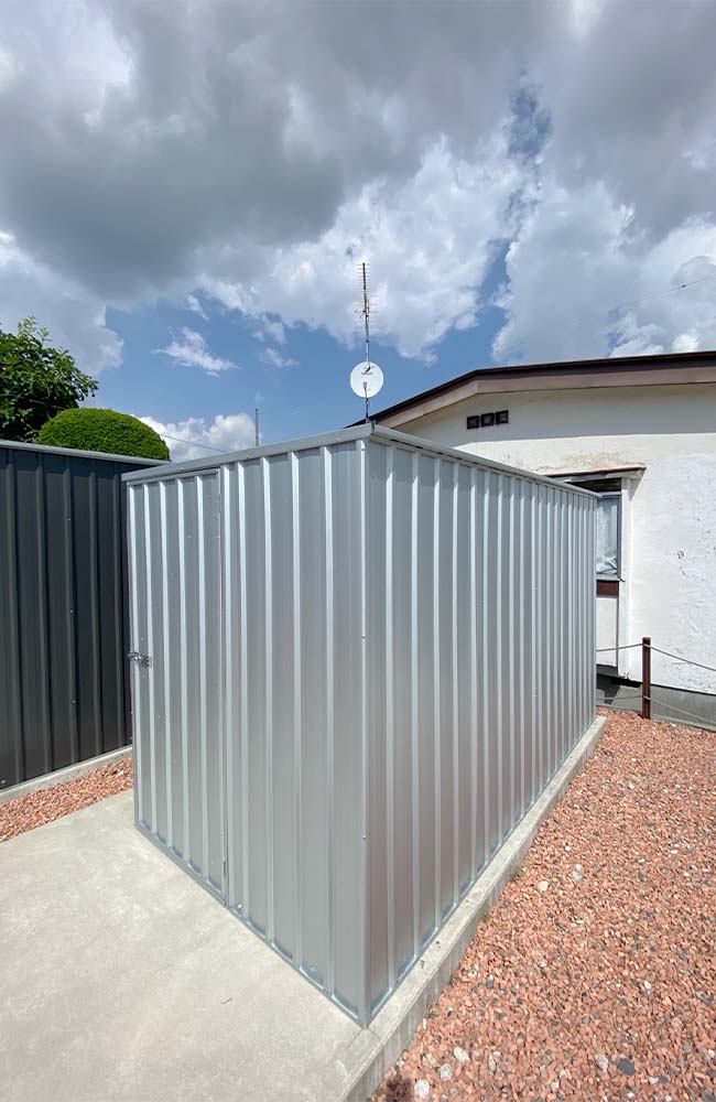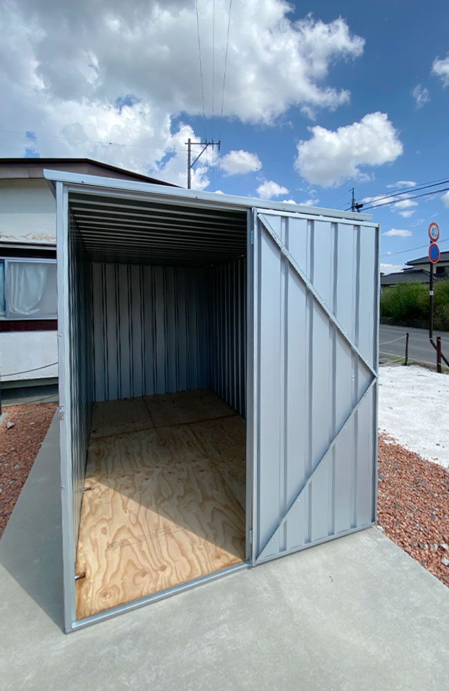 コンテナ型のシンプルでかっこいい物置。最高品質のスチール素材で作られたパネルは強固なだけではなく、独特の無骨で無機質さも楽しめます。