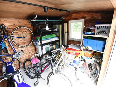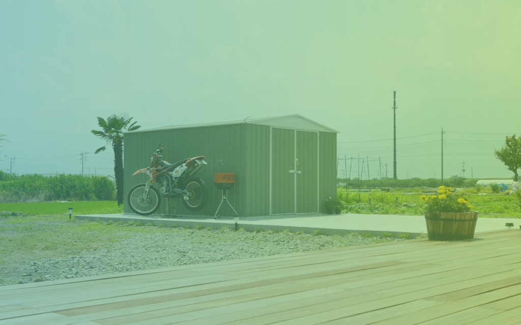 ロードバイクなどが趣味の方は屋内をカッコよくカスタマイズして、ガレージとして使用されている方がとても多いです。壁にスペアタイヤを飾ったり、スチールラックを設置してメンテナンス用品を収納したり。ツーリングの後に一人で物置の中で寛いだり。仲間や家族との憩いの場にしたり。ただ収納するだけではなくガレージや小屋としても人気です。