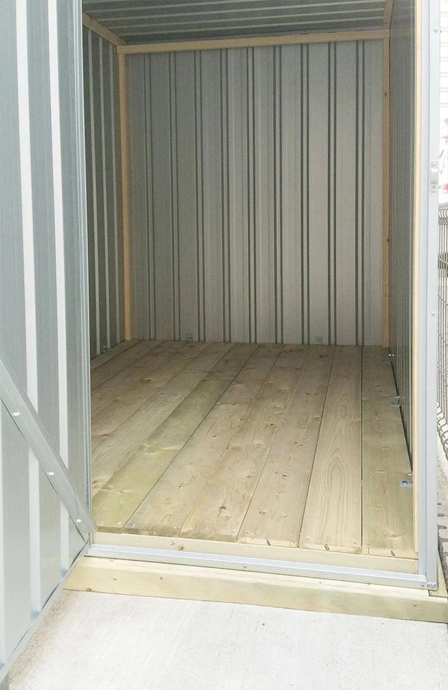 木製床キットで温かみのある物置小屋に