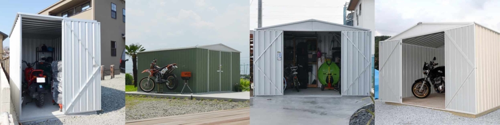 三角屋根が特徴のフロントエントリーシリーズの中でも一番人気のサイズです。広々とした空間はバイク保管にはもちろん、車のタイヤやアウトドアグッズなど、家族で使用するものを収納しておくのにも便利。