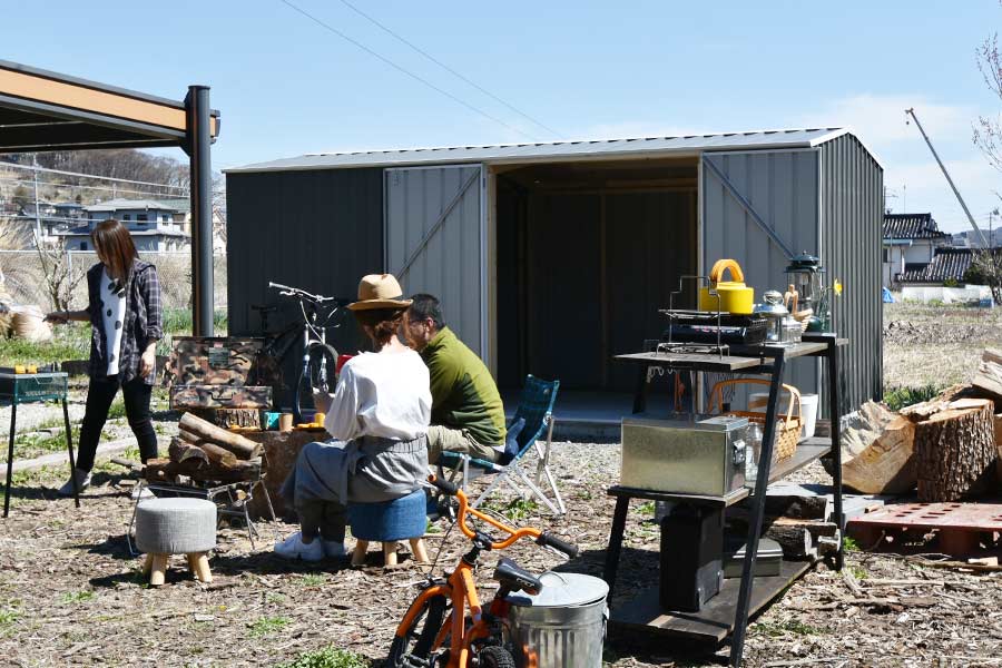バイクガレージを活用して、気軽にアウトドアを楽しむ。外で使う椅子やテーブル、バーベキューアイテムをひとまとめに収納しておけば、ご家族や友人の憩いの場となってくれます。