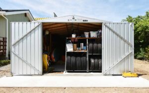 けれどスチール製の物置なら汚れも気にしなくていいし、グッズもまとめて収納して置けます。