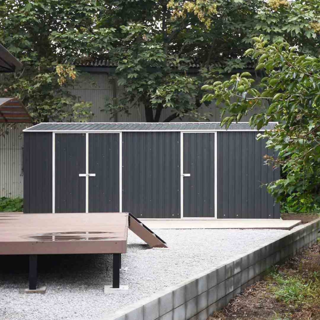 見た目にもこだわったユーロ物置®︎は、庭の景観を引き締めるシンボルにも。