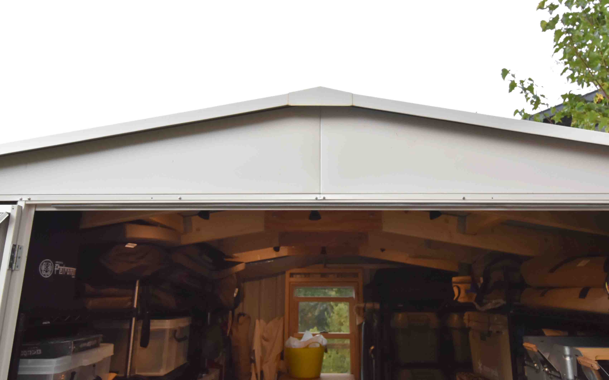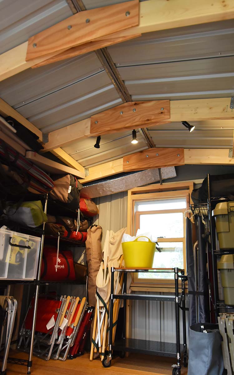 最初は雨漏りを覚悟していましたし、夏は虫で中とかすごいのかなと思っていました。でも実際は気にならないです。難点で言えば、庫内がちょっと夏は暑くなるところですね。それを見越して窓を付けました。ただ開けっ放しにしておくと雨が入ってしまうので、少し開けて使用しています。
