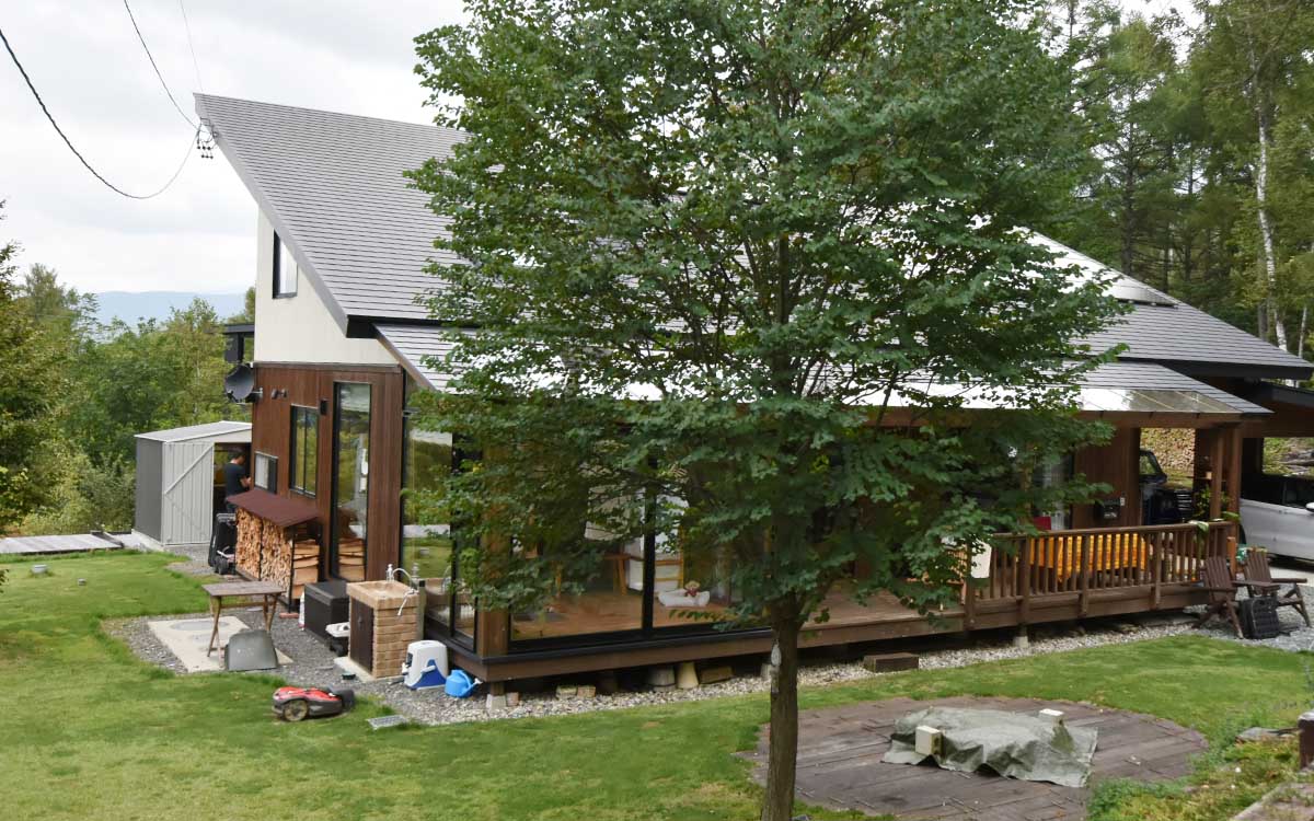 この庭は最初は雑木林でした。なので全部伐採して好きな木を植え直し庭を作りました。芝は最初、業者に綺麗にやってもらいましたが、半分くらい枯れてしまいました。この辺りで芝を育てるのはすごく大変ですね。いろんな種を買ってきて、ミックスしてその上から撒いて育てました。