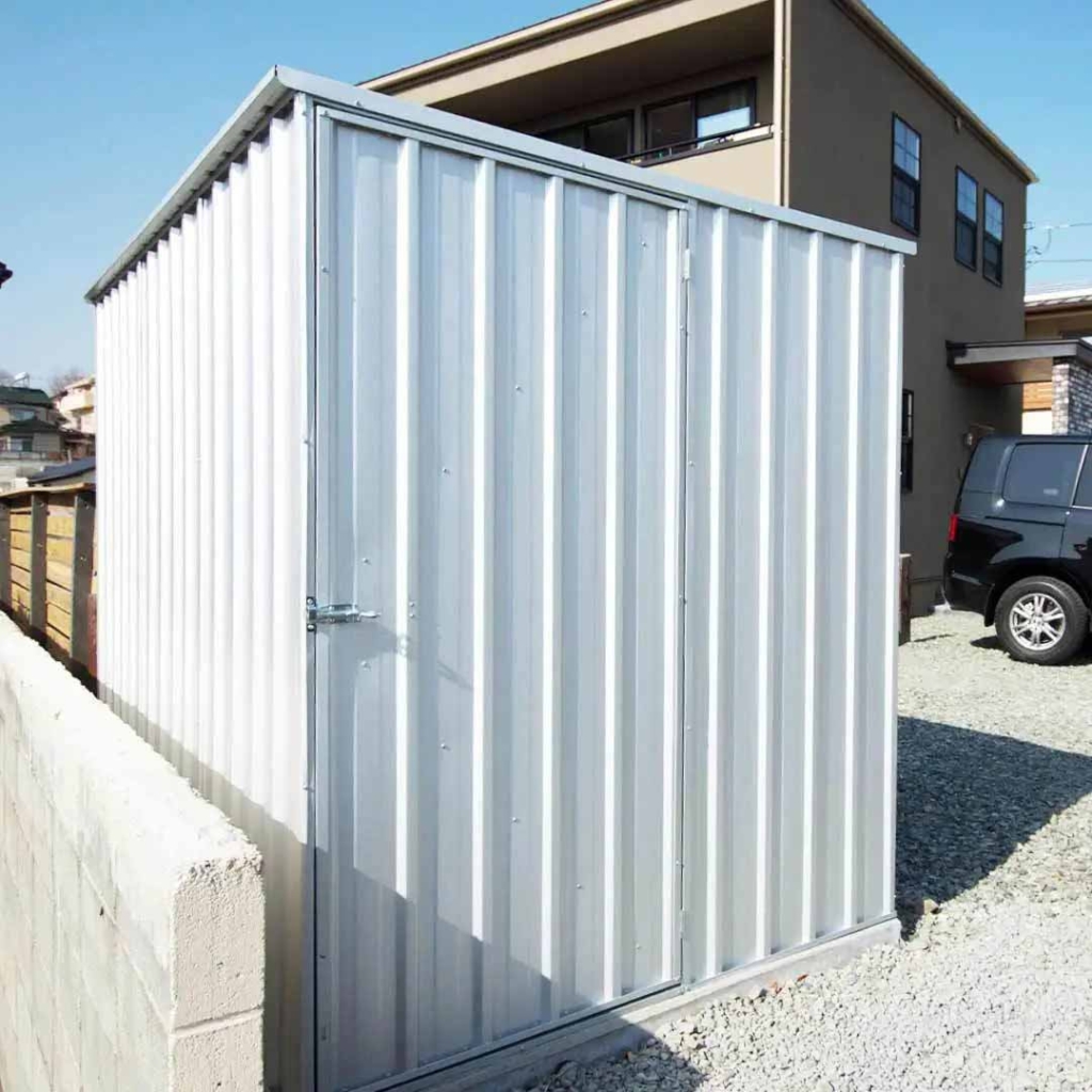 奥行1m〜の物置はスタンダードなサイズ感です。庭や駐車場に置ける利便性の高さも人気です。