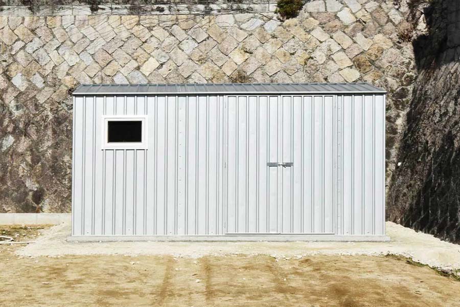 奥行5m〜の物置は車庫としてもお使い頂ける物置です。また、屋内を仕切り二つの用途でも快適にご使用頂けます。