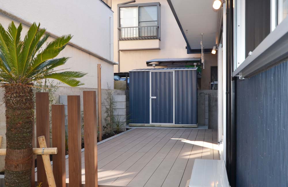 あまり使い道のない母屋の横や裏など、狭いスペースに設置すればお庭も広く使えますね。都心部などお庭が無いお家も母屋の裏や横に設置できるので「物置を諦めなくて良かったー」なんて嬉しいレビューも頂きました!