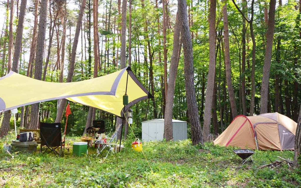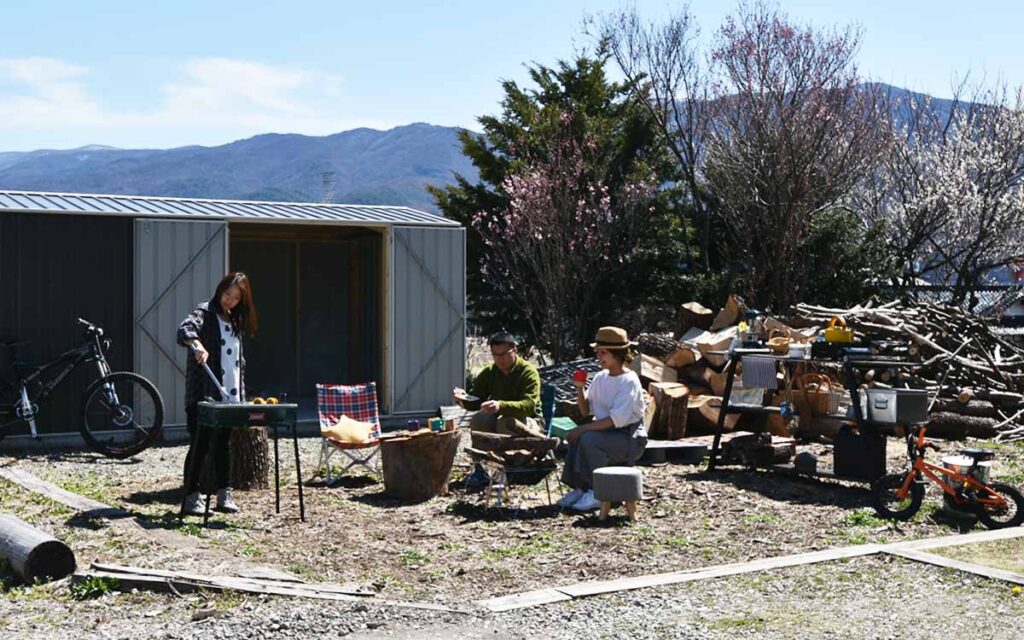- 「キャンプサイトに行けないときは家の庭でミニキャンプ。女性や子供は寒さ対策で小屋の中で過ごせるようにすれば、夜の焚き火も一緒に楽しめます」