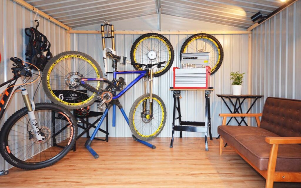 ロードバイクの保管庫として人気があるユーロ物置®。競技用の自転車や複数台の自転車も、雨や風を防いで保管できます。天気が悪い日は物置の中で愛車のメンテナンスをするのも至福の時間。スペアのタイヤや細かい道具もまとめて収納できちゃいます。